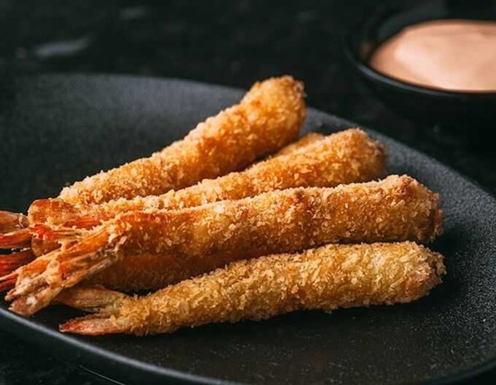Креветки с хвостом в панировке.
