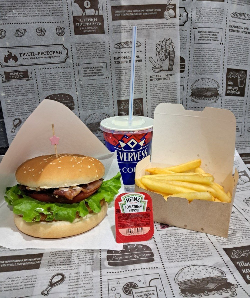 В составе набора: Чикен Барбекю, картошка фри, соус, напиток 0.33 на выбор.