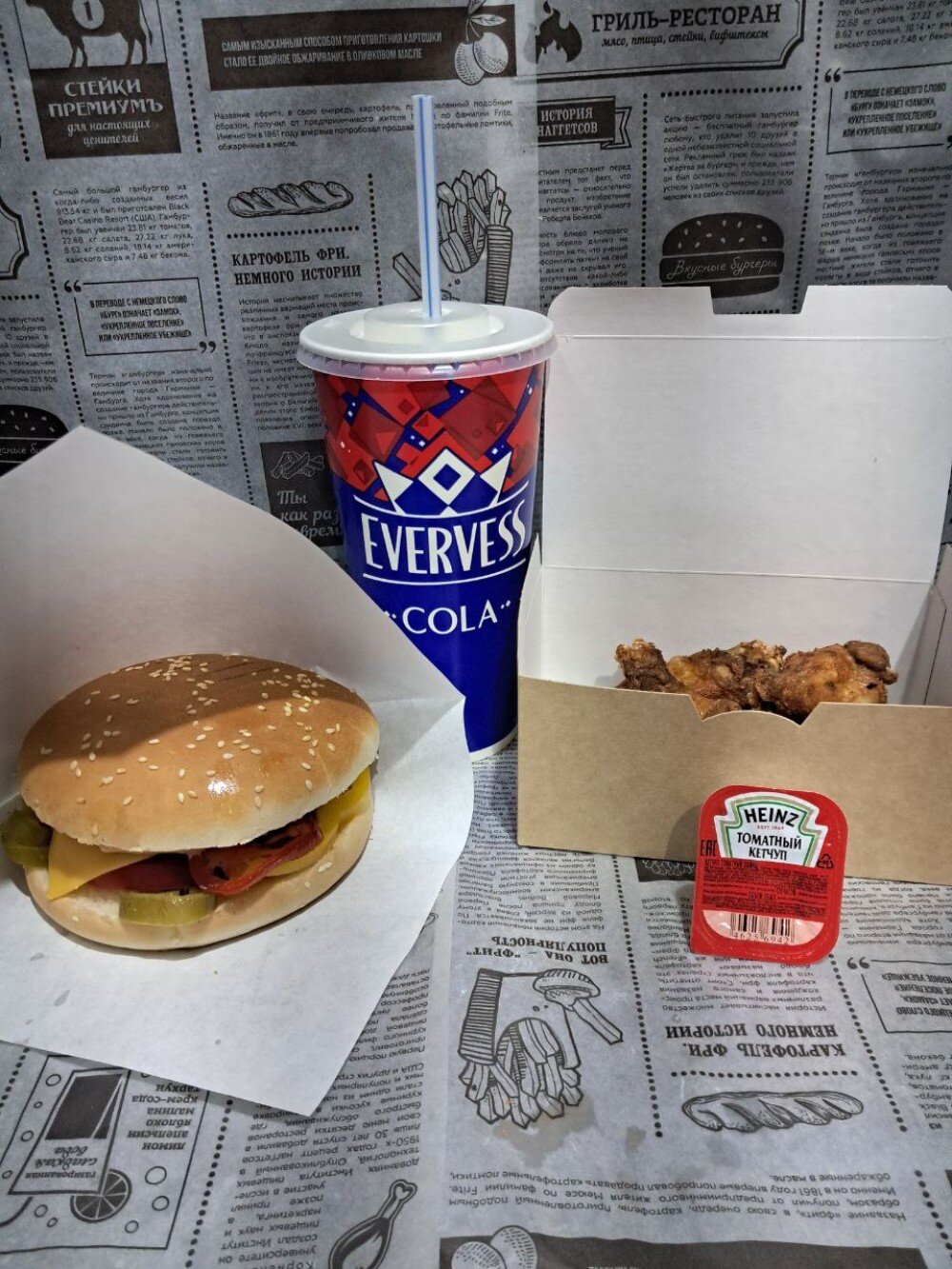 Бургер Чикаго , острые крылья 6, соус, напиток 0,5